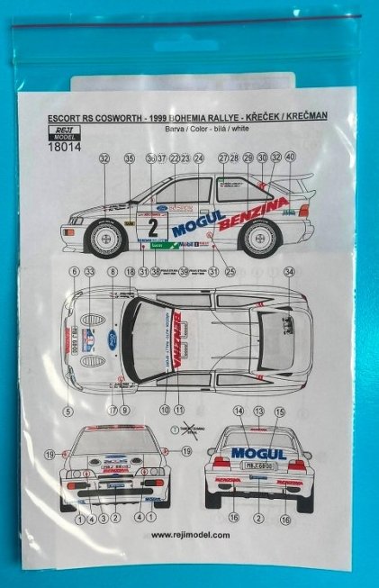 REJI MODEL - 1/18 Ford Escort RS Cosworth Bohemia Rallye 1999 decal
