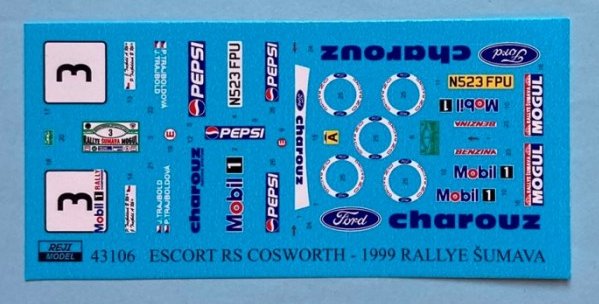 REJI MODEL - 1/43 Ford Escort RS Cosworth Rallye Sumava 1999 decal