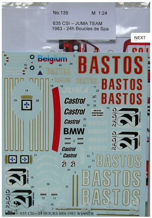 Reji Model - 1/24 BMW 635 CSi BASTOS Juma Team 1983