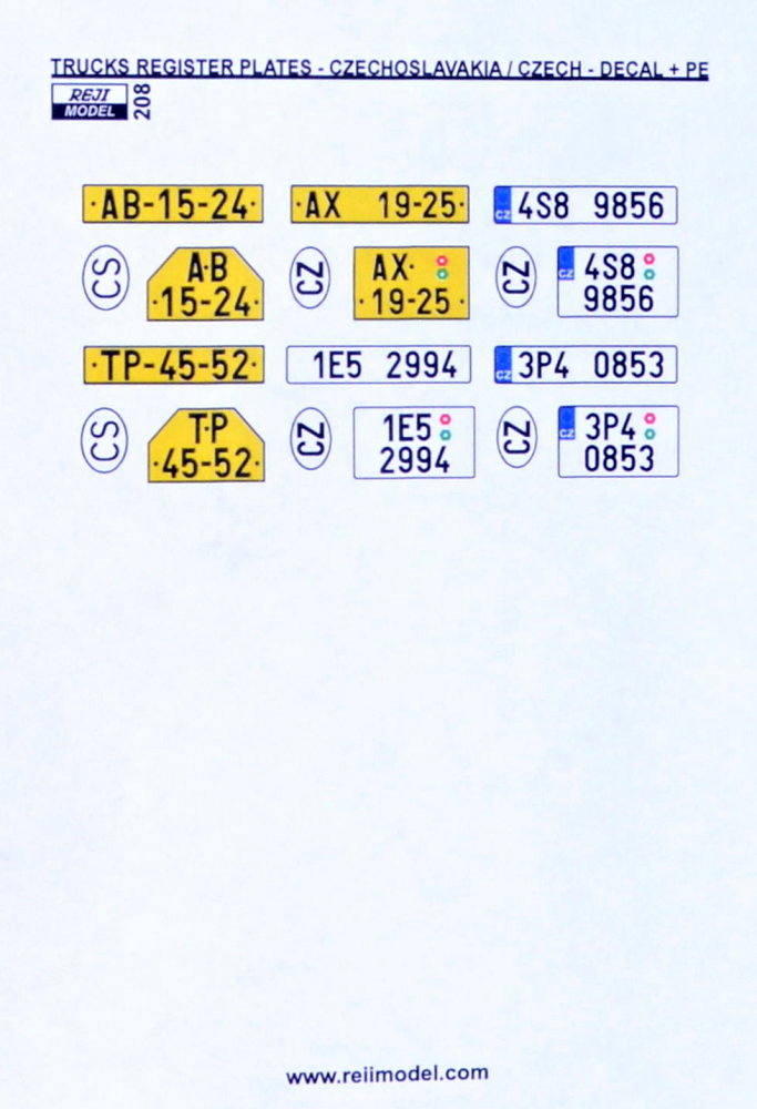 REJI MODEL - 1/24 Truck register plates CS+CZ (PE & decals)