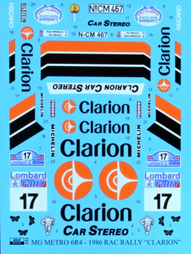 REJI MODEL - 1/24 Metro 6R4 Clarion team Europe RAC Rallye 1986 decal