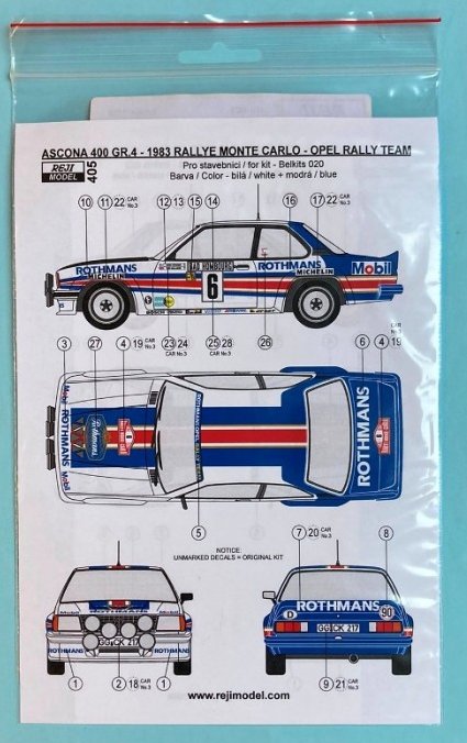 REJI MODEL - 1/24 Opel Ascona 400 Gr.B Rallye Monte Carlo 1983 decal