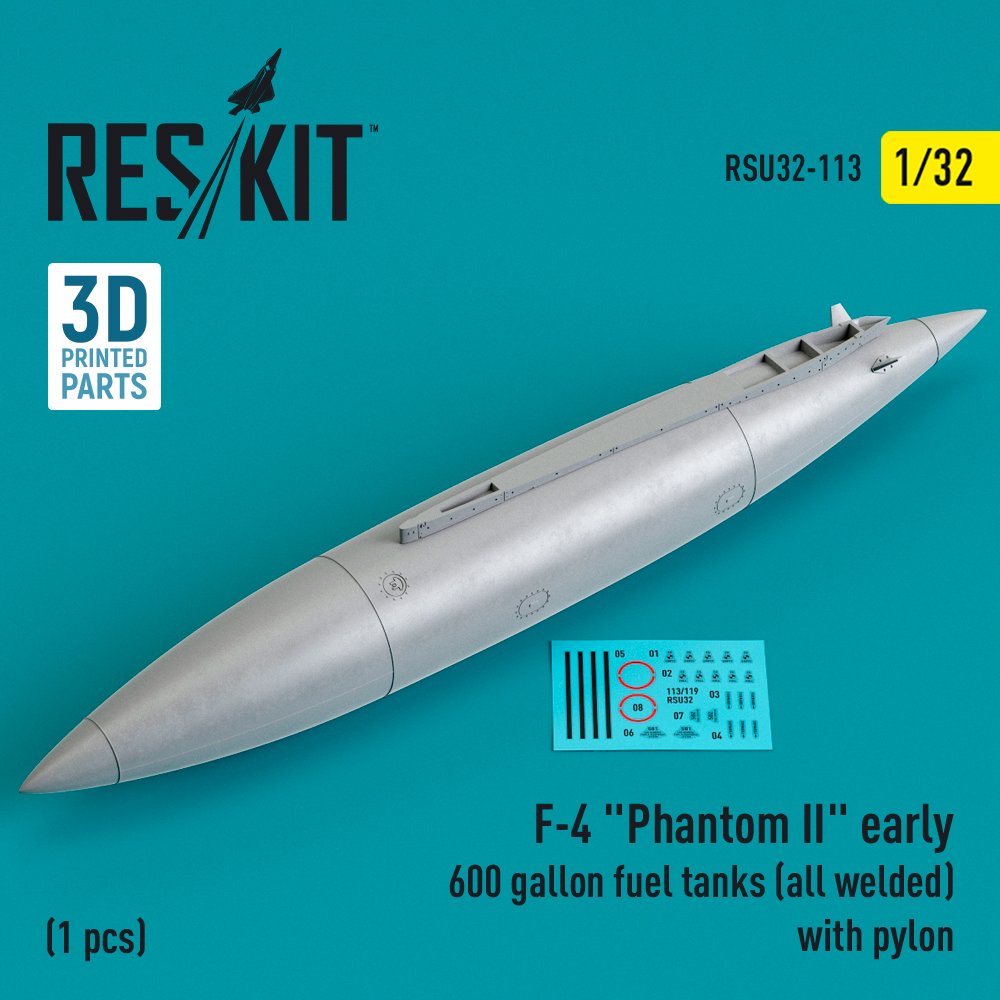ResKit - 1/32 McDonnell F-4 Phantom II early 600 gallon fuel tanks for all welded with pylon for 1 pcs for 3D-Printed for F-4C, F-4D, F-4E, F-4G for 2 pcs for for Tamiya kits