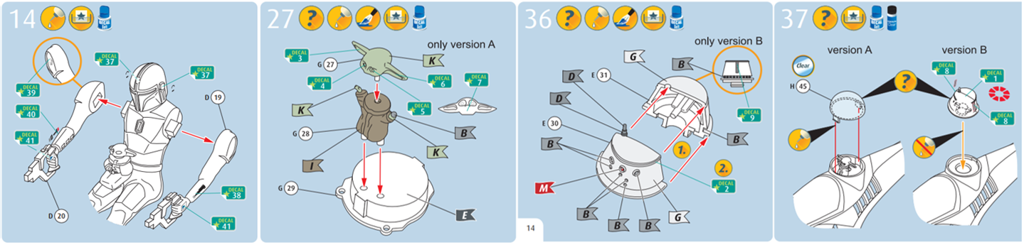 Revell's New Tool release will include parts to enable the builder to recreate any of the configurations as detailed above, Grogua' on Mando's lap, Grogua' standing in the astromech station, or 'Red' in the astromech station with Grogua' on Mando's lap the diorama potential is endless! And, at 1:24 scale completed kit measures 457mm long, this ties in to aftermarket 70-75mm figures and accessories/weapons many WWI/WWII-era, from which much of the original Star Wars 'used galaxy' look was adapted and developed from.