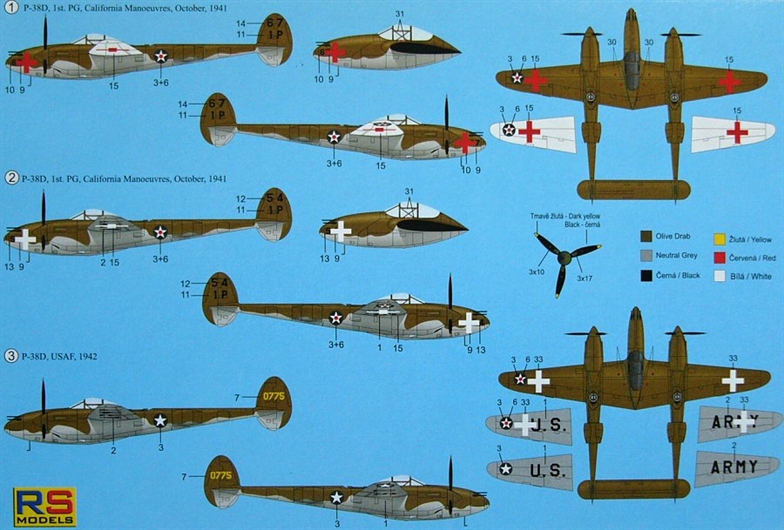 RS MODEL - 1/72 P-38D Lightning (3x camo)