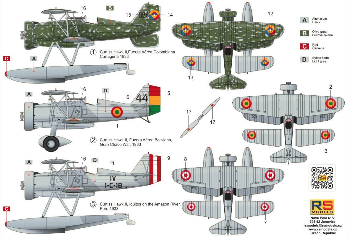 RS Models - 1/72 Curtiss Hawk II 'Grand Chaco ' 3 decal ver. for Colombia, Peru , Bolivia