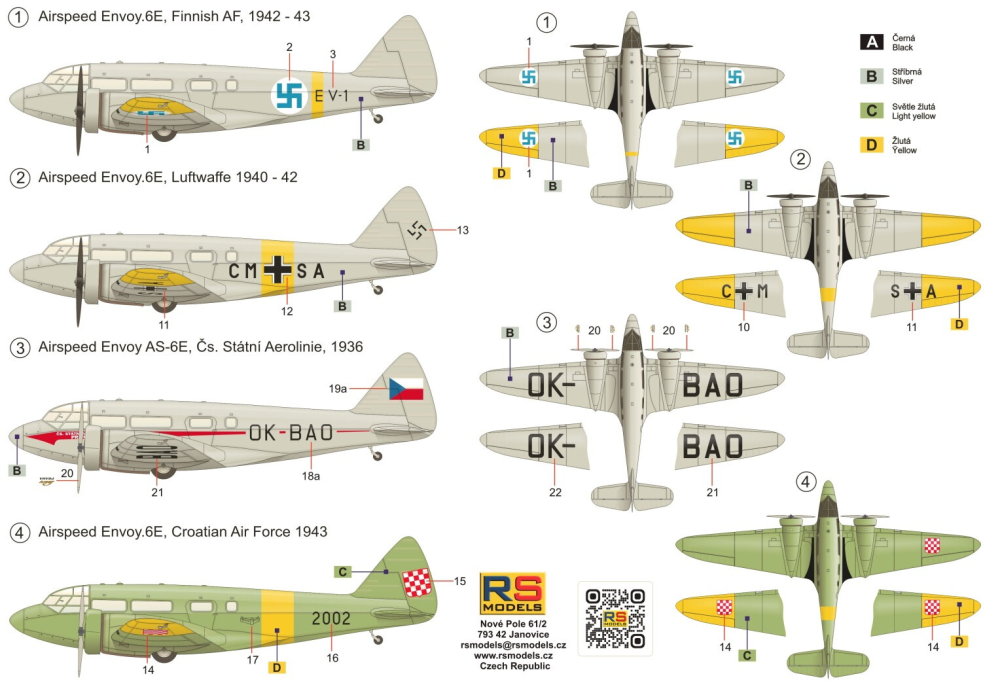 RS Models - 1/72 Airspeed Envoy Castor engine 4x camouflages