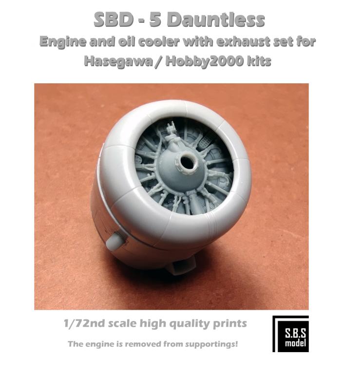 SBS Model - 1/72 Douglas SBD-5 Dauntless engine, oil cooler and exhaust set (3d-printed) (for Hasegawa and Hobby 2000 kits)
