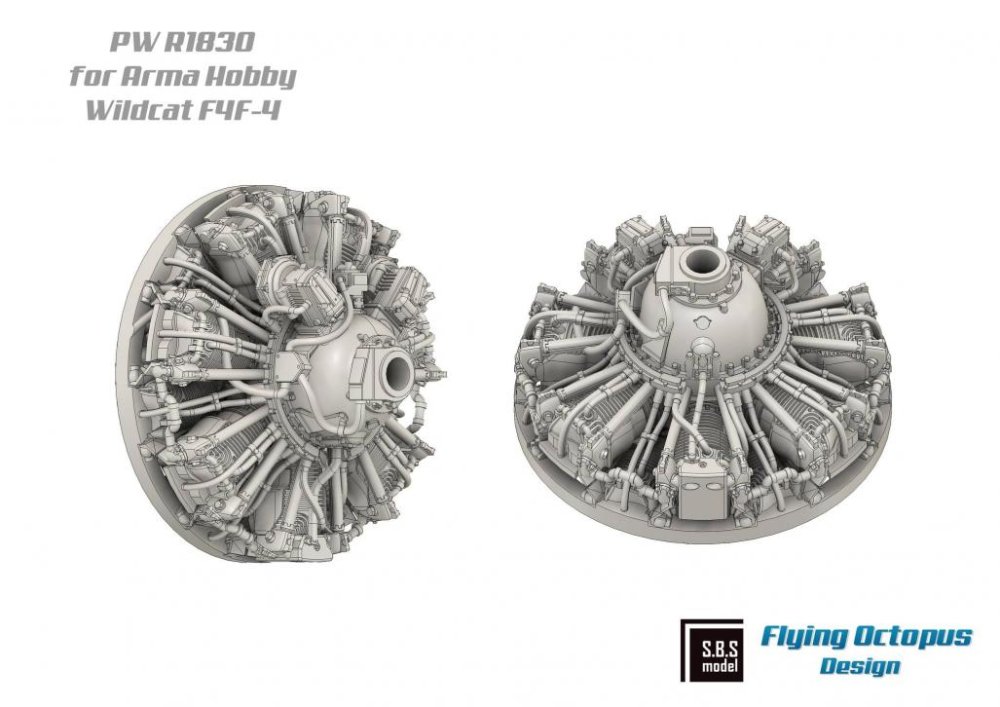 SBS MODEL - 1/72 F4F-4 Wildcat Engine & Exhaust set for Arma Hobby.
