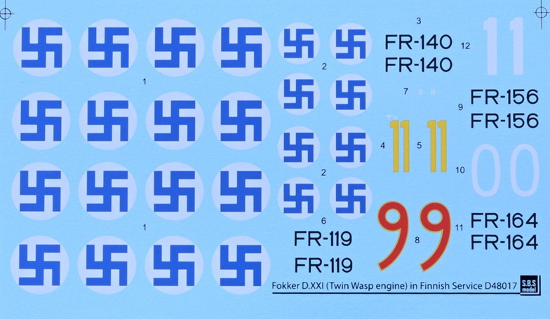 SBS MODEL - 1/48 Decal Fokker D.XXI Twin Wasp in Finnish serv.