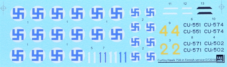 SBS MODEL - 1/72 Decal Curtiss Hawk 75A in Finnish service