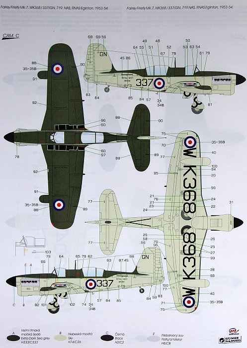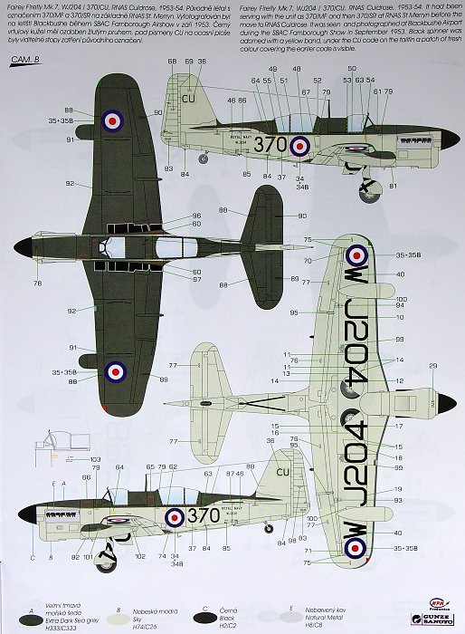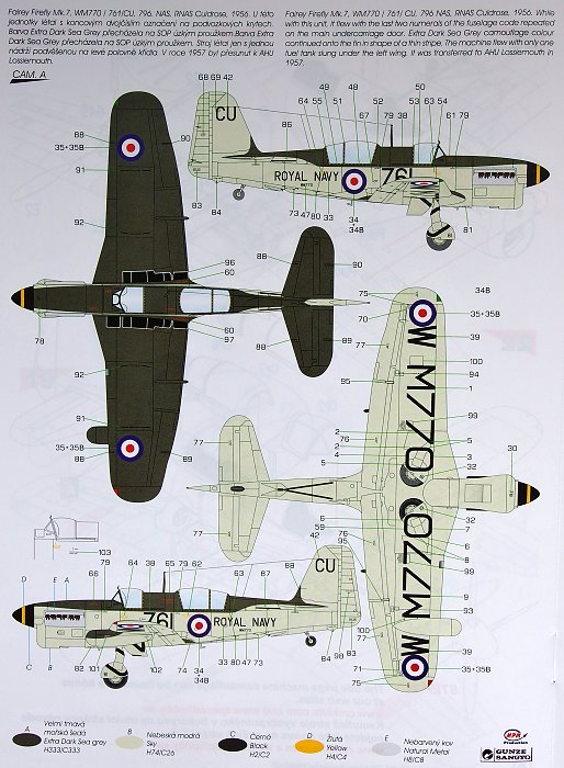 Special Hobby - 1/48 Fairey Firefly As Mk.7 Anti-submarine version The model consists of six sprues with grey plastic parts, one sprue of clear parts, you can find there also a optional vac-formed bulged canopy of the operators cockpit, undercarriage bay resin parts, exhausts and air intakes. The decals come with four options, all of them in post-war Rn camouflage scheme. The machines depicted there are in fact only three, but one of them is in two various schemes known from contemporary photographs.
