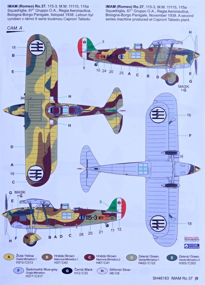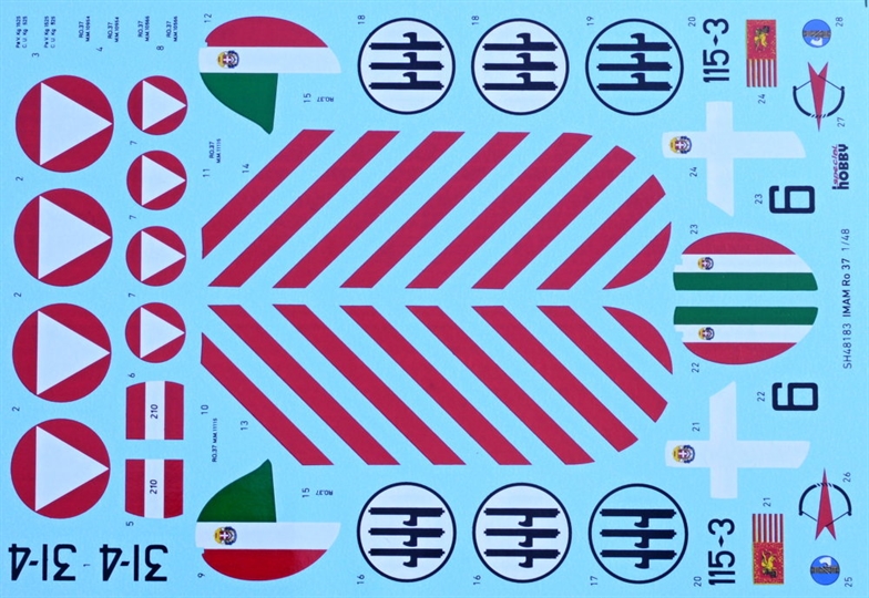 Special Hobby - 1/48 IMAM (Romeo) Ro.37 A30 engine In the early 1930s, the Italian Regia Aeronautica operated IMAM Ro.1 (licence-built Fokker C.V) reconnaissance and observation biplanes. The military were quite happy with the type, however when IMAM offered a new biplane type designed by Giovanni Galasso, the decision was taken to acquire this new aircraft. Following the prototype s successful test flights, the production was commenced in 1934. The Ro.37 was powered by an in-line Fiat A.30 engine. The Italian military also showed interest for a version fitted with a Piaggio P.IX radial engine. This version was known as the Ro.37bis and was produced along the inline-engined type. The Ro.37 and 37bis became the main observation and reconnaissance types of the Regia Aeronautica and were kept in service until Italy surrendered on 25 August 1943. By this time, a total of 621 machines of both versions had been produced, 325 of which were the bis version. The very first time the type saw combat action was during the Italian attack on Abyssinia (Ethiopia). They also fought in the Spanish Civil War, operated both by the Aviazione Legionaria and by the Aviación Nacional.
