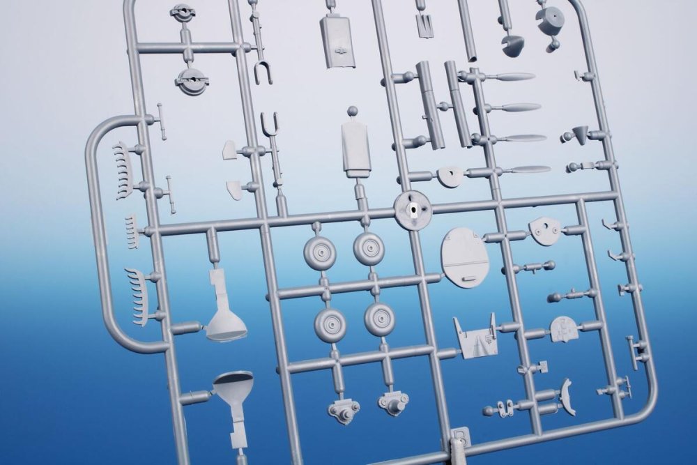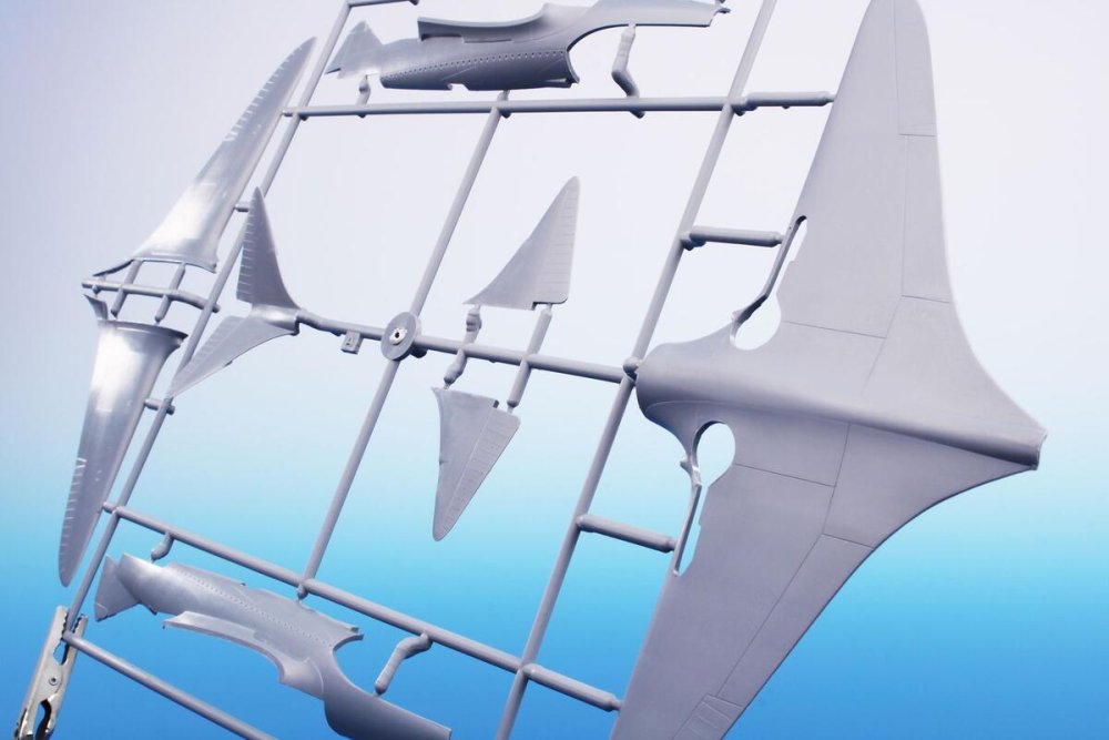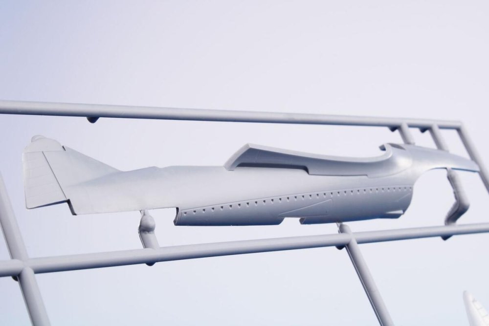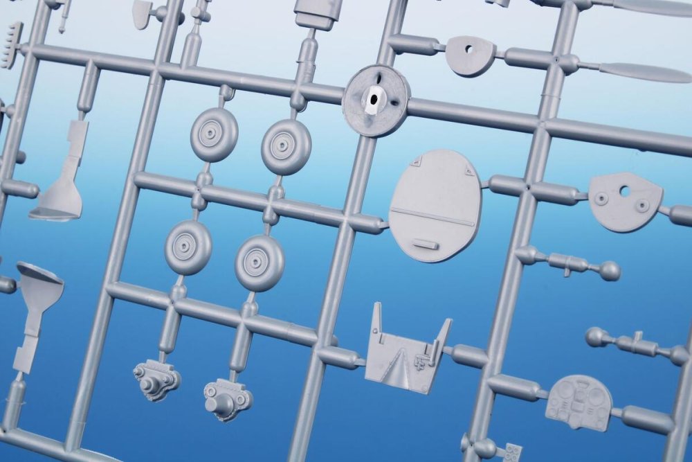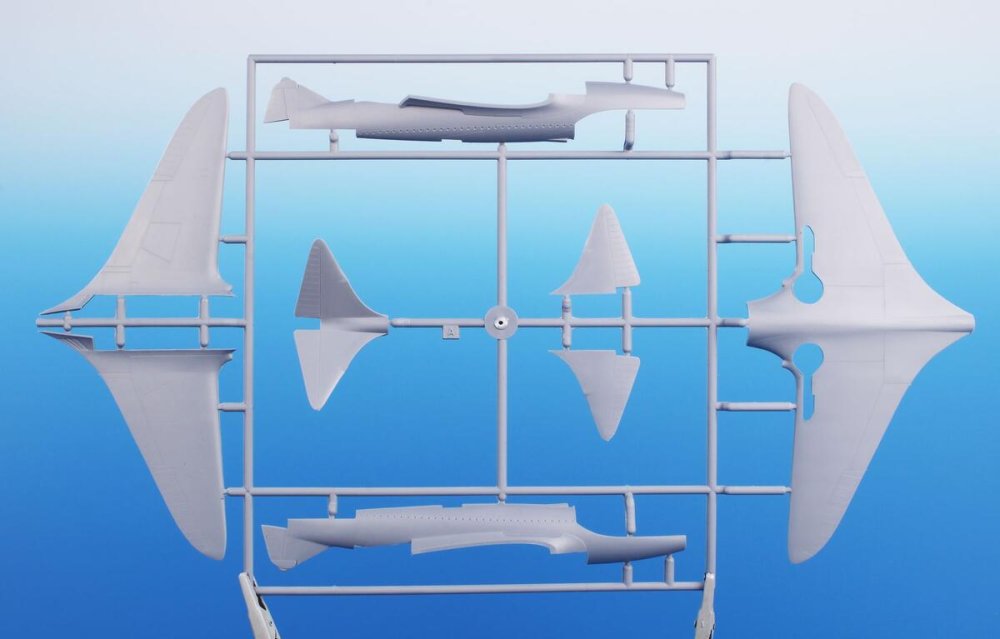 This kit contains two styrene sprues and a single one with clear injected canopy. As the machine was in blue overall scheme with no markings at all, the kit has got no decal sheet. The schemes are two though, the other one representing a fictitious scheme.