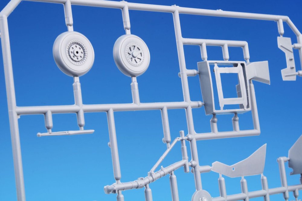 The kit consists of Xx grey styrene sprues, one with clear parts, a set of Pur parts and a fret of etches. There are also two styles of the water tanks available and the decal sheet caters for makrings of a trio of machines.