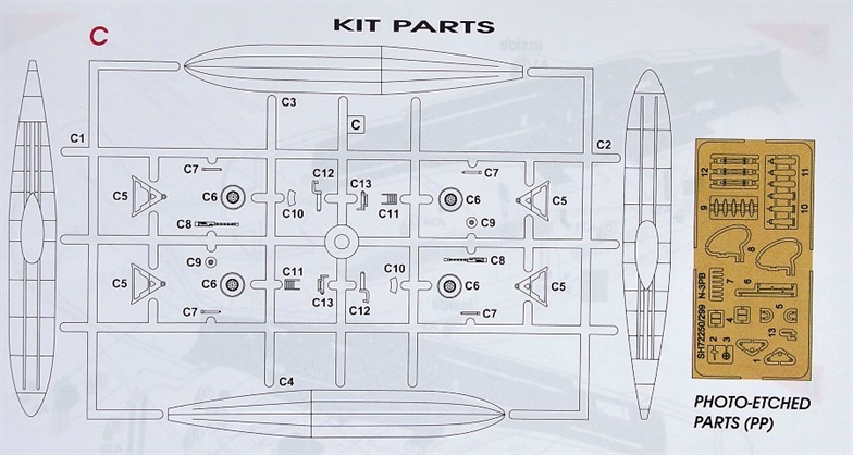 The kit features three grey styrene runners and one with the clear parts. Some of the smaller parts were created using our advanced Cad design and a metallic insert in the standard moulds will assure their best possible quality. Among those 3D-designed parts is also the beaching gear. The photo-etched fret takes care of some interior detail, water rudders and mooring points.