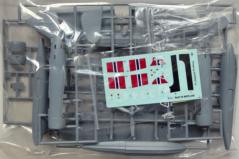 Special Hobby - 1/72 Northrop N-3PB 'Little Norway' The kit features three grey styrene runners and one with the clear parts. Some of the smaller parts were created using our advanced Cad design and a metallic insert in the standard moulds will assure their best possible quality. Among those 3D-designed parts is also the beaching gear. The photo-etched fret takes care of some interior detail, water rudders and mooring points.