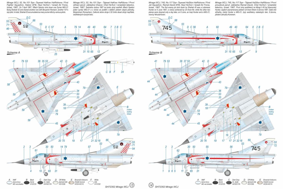 Special Hobby - 1/72 Dassault Mirage Iiicj The Mirage Iiicj became the symbol of the Israeli air superiority during the wars with the neighbouring Arab countries. The Mach Two, high performance, delta wing fighter aeroplanes were produced by French Dassault, but the Israeli Cj version differed from the airframes built for the French military by not being fitted with the rocket booster motor. The Israeli Mirages took part in the War over Water, Six Day War, Attrition War and the Yom Kippur War as well as several more minor clashes. In its air superiority role, the Mirage did very well indeed, and many of their pilots quickly became aces.