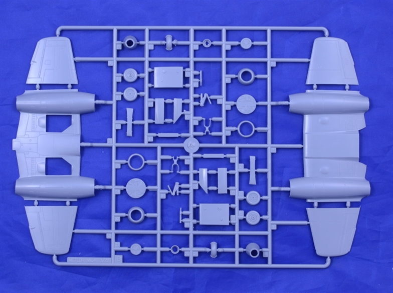 The kit comprises two styrene sprues and a clear injected canopy, a fret of photo-etched engine air intake meshes, adhesive masks for various style canopies (incl. the special high speed metal canopy with small transparent portholes) and a decal sheet for record breaking machines serialled EE454, EE455 and EE549. The latter is depicted in two various colour schemes (camouflaged and all-blue) and what may be most interesting, with two various styles of her outer wing panels as later during the career, she was seen fitted with a standard Mk.4 short span wing.