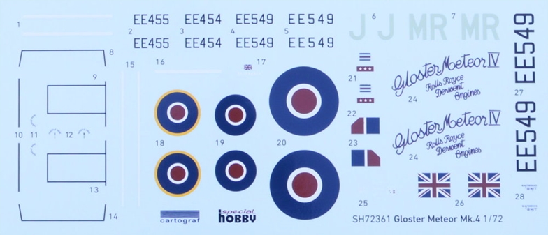 Special Hobby - 1/72 Gloster Meteor F.4 World Speed Record The very first British jet engine-powered fighter to see operational service was the Gloster Meteor. Following the wartime Meteor Mk.Is and Mk.IIIs, the production line gave also the post war Mk.4 version with much better performance. On 7 November 1945, two Meteor Mk.3s rebuilt to a Mk.4 standard were used to attempt the World Speed Record. The RAF High Speed Flight Meteors serialled EE454 and EE455 were flown by RAF's Group Captain Hugh Joseph Wilson, CBE, AFC and Two Bars and Gloster Chief Test Pilot Eric Stanley Greenwood. Wilson, flying the camouflaged EE454 was few more miles faster that Greenwood in (almost) all-yellow EE455, having raised the record to 975.68 kmh. Less than a year later, Gp Capt E M (Teddy) Donaldson in a Meteor serialled EE549 set up a new record of 991.33 kmh and in January 1947, the very same machine also raised the Paris-London speed record.