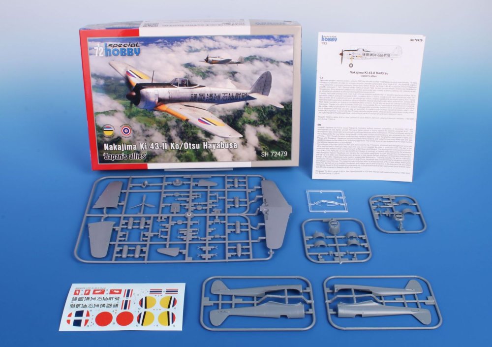 Special Hobby - 1/72 Nakajima Ki-43-II Ko/Otsu 'Japan's allies' The Ki-43 Hayabusa/Oscar was arguably one of the most significant fighter types of the Japanese Army Air Force. The Oscar was also delivered to the air forces of Japan allies as were the puppet state of Manchuria and Thailand. The Manchukuo Imperial Air Force Oscars bore interesting and colourful markings and on the fuselage sides also had large presentation slogans. The Thai fighters saw combat against Usaaf aircraft and several of remaining examples were still in service after the war with the Royal Thai Air Force.