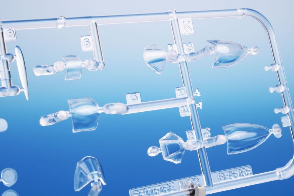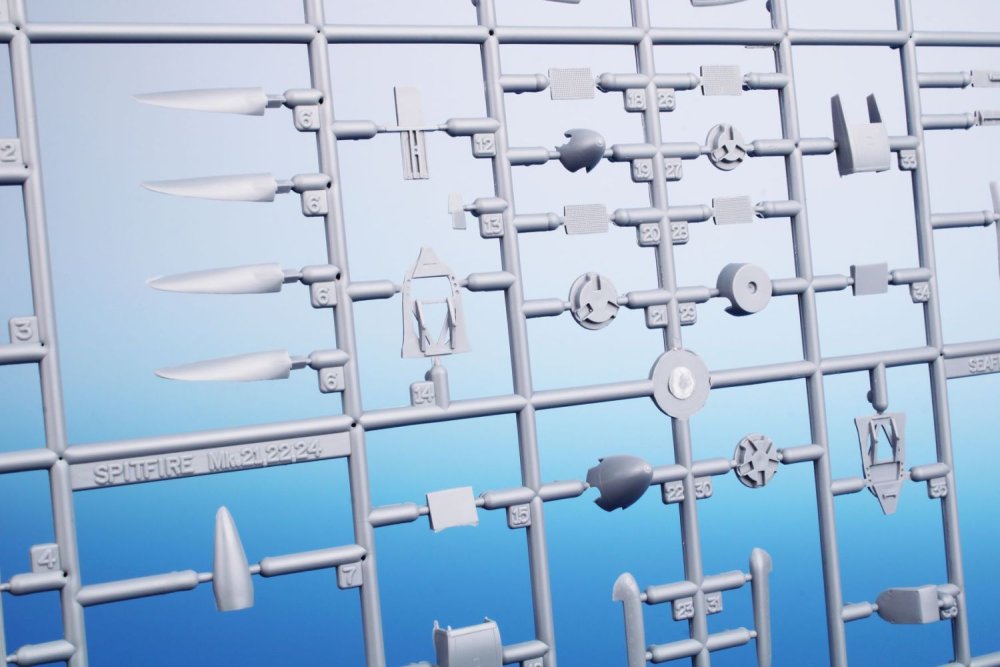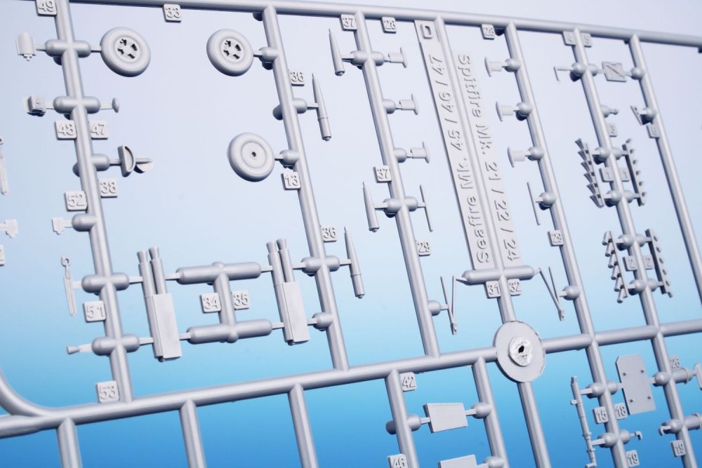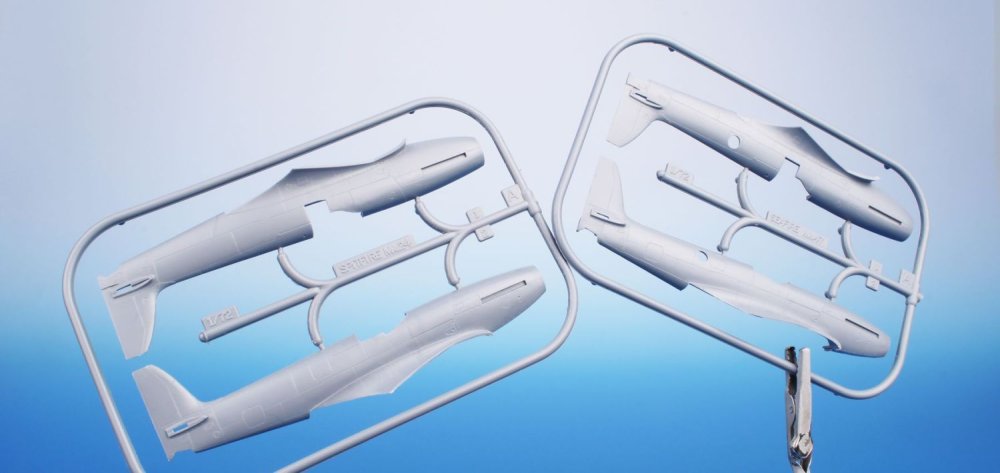 The kit set comes on five styrene sp rues joined by one with clear parts. The fuselage halves come in two styles, too, to depict the differences between the fighter and figher-recon airframes. The decal sheet caters for two machines as operated by No.1832 Nas Rnvr at Rnas Culham. One of them is a fighter, the other one a fighter-recce Fr Mk.46 machine.