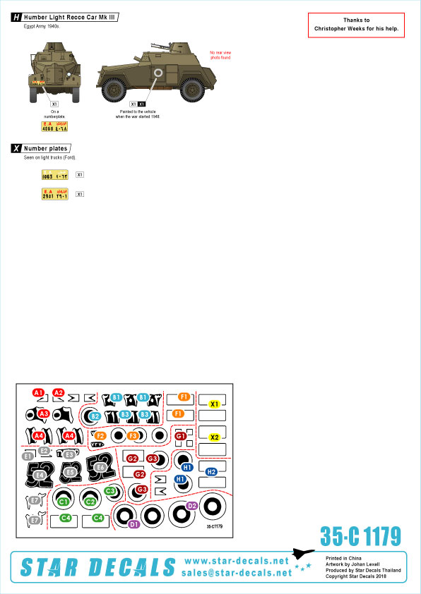 Star Decals - 1/35 Middle East 1948(ish) Part 1. Egyptian Tanks. Vickers Light Tank Mk.VIB, Bren carrier, M22 Locust, M5A1 Halftrack Humber AC Mk.IV, Daimler Dingo, Humber LRC Mk.III.