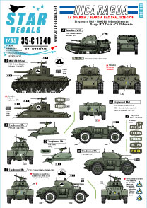 Star Decals - 1/35 Nicaragua Part 1. Guarda Nacional 1925-1979. Staghound, M4A3E8 105mm Sherman, Dodge M37 Truck, CV.33 Ansaldo