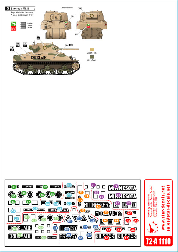 Star Decals - 1/72 British 9th Armoured Division. Africa, Palestine and Syria. Sherman Mk.II and Sherman Mk.III