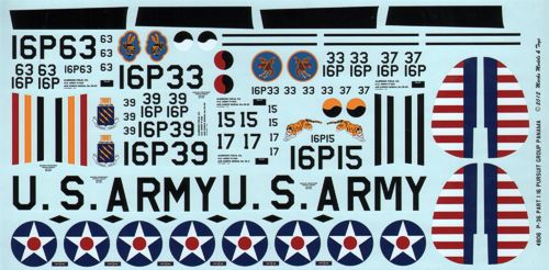 Starfighter Decals - 1/48 16th Pursuit Group Curtiss P-36 Hawks (designed to fit the Academy and Hobbycraft P-36 kits) Markings for 7 different aircraft from the 16th Pg and 24th, 29th, and 43rd Pursuit Squadrons are contained on this sheet to include:
