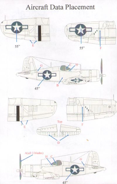 Starfighter Decals - 1/72 Bent Wing Birds Pt. 1 Corsairs in G Markings. Markings for 6 different Vought F4U-1D/FG-1D Corsairs: VF-5 USS Franklin, VFB-6 USS Hancock, VMF-216 USS Wasp, VFB-85 USS Shangri La, VF-83 USS Essex (kill markings), VMF-112 USS Bennington. Tamiya Kit