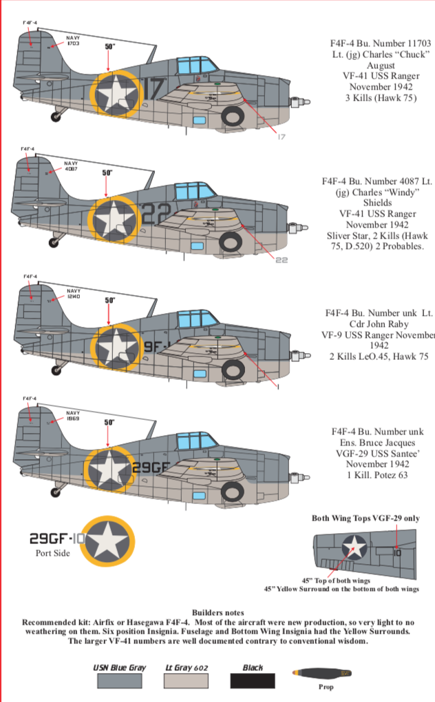 Starfighter Decals - 1/72 Operation Torch 1942. Markings for Grumman F4F-4 Wildcats, TBF-1 Avengers, Douglas SBD-3 Dauntless, Curtiss Soc Seagull, and a Piper L-4A Cub