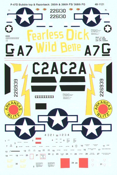 Microscale - 1/48 Republic P-47D Thunderbolt Thundebolt (2) 'Razorback' 226130 A7-G Lt R.Kik, 395 Fs `Wild Bene/Fearless Dick' D-Day stripes, Bubble top 226939 C2-A `Arkansas Blitz' Lt/Col Paul Douglas 396th Fg