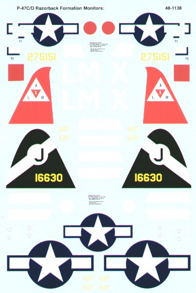 Superscale - 1/48 Republic P-47C/P-47D Thunderbolt 'Razorback' (2) Republic P-47D Thunderbolt 42-75151 HQ.Flt. 1st Combat Bw Formation Monitor, Republic P-47C 41-6630 453rd Bw (Heavy) Formation MonitorBT