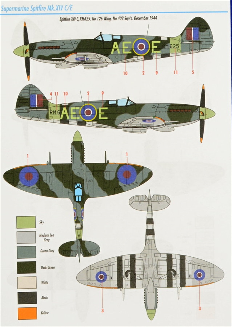 Sword - 1/72 Supermarine Spitfire Mk.XIVC/E. 4 decals versions. The wings for C and E versions, standard and clipped wings.
