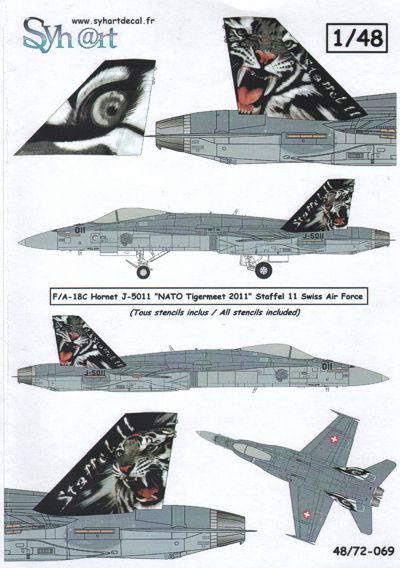 Syhart - 1/48 McDonnell-Douglas F/A-18C Hornet Swiss Air Force J-5011, Nato Tigermeet 2011 with striking Tiger heads on fins