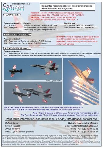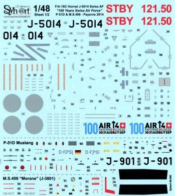 Syhart decals - 1/48 - F/A-18C Hornet J-5014 "AIR14" Payerne + p-51D + D-3801 decals