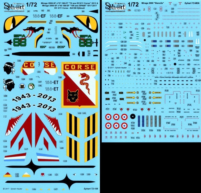 Syhart - 1/72 Dassault Mirage 2000-5F n°57 188-ET '70 years EC3/11 Corse' 2013 . Based in Africa on the airbase BA188 of Djibouti since 2008 with only a handful of aircraft (at the time, Mirage 2000D and -5F), the squadron EC3/11 'Corse' celebrates its 70th anniversary in 2013.