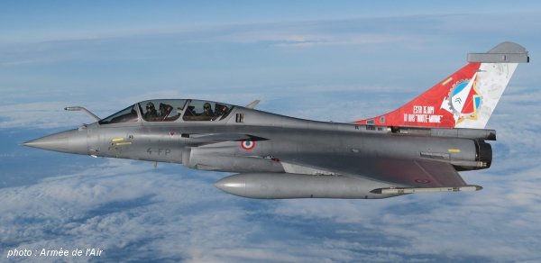 For the event, the Rafale B n 349 4-FP received a special tail, designed by Regis Rocca, it represents the colors of the squadron, inherited from the Ests 2E.007 (GERMAS) operating then on Jaguar and Alpha Jet.