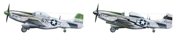 The legendary U.S. Air Force P-51D Mustang originally used a Hamilton Standard propeller, but shortages forced the U.S. to fit some models with an Aeroproducts propeller. They were renamed the P-51K and mainly assigned to the Asian Theater. The P-51K and P-51D possessed both speed and the ability to fly long-range missions, and could serve as bomber escorts or attack enemy ground installations themselves. In addition to the fighter role, some P-51s were equipped with cameras and used as reconnaissance aircraft. Such aircraft were based on the P-51D and designated the F-6D.