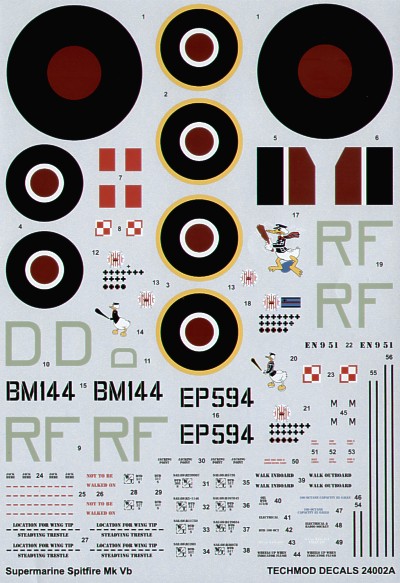 Techmod - 1/24 Supermarine Spitfire Mk.Vb (3) all RF-D Flt Lt/ Sqd Ldr Jan Zumbach 303 Polish Sqn with Donald Duck cartoons. BM144, EP594, EN951