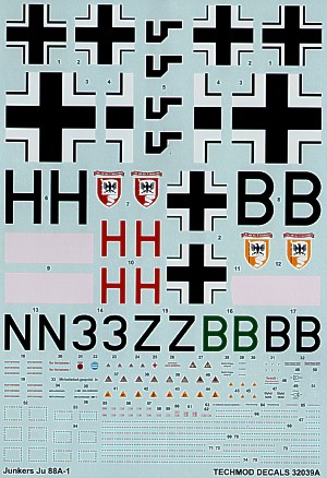 Techmod - 1/32 Junkers Ju-88A-1 (2) 3Z+BB 1 Stab/KG 77, 3Z+HN 5/KG 77. Both Laon-Athies, France Sept 1940 in RLM 70/71/65 with pink bands on tail