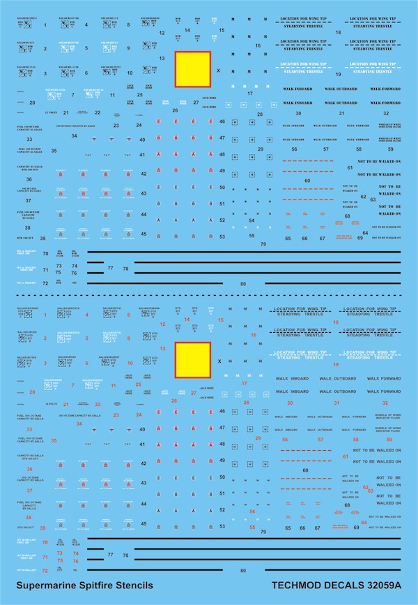 Techmod - 1/32 Supermarine Spitfire Stencils [Mk.IIa Mk.VIII Mk.Vb Mk.IXc Mk.XVIe]