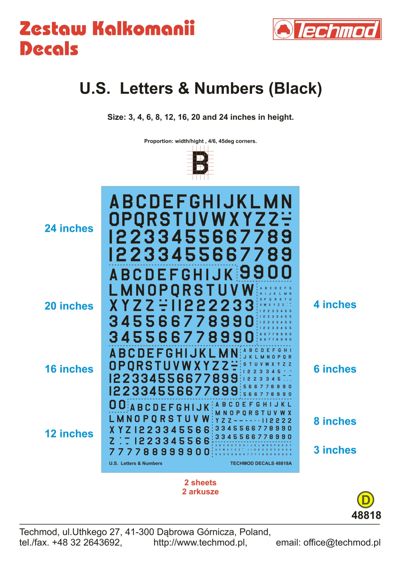 Techmod - 1/48 Black U.S. Letters & Numbers 3" 4" 6" 8" 12" 16" 20" and 24" inches in height