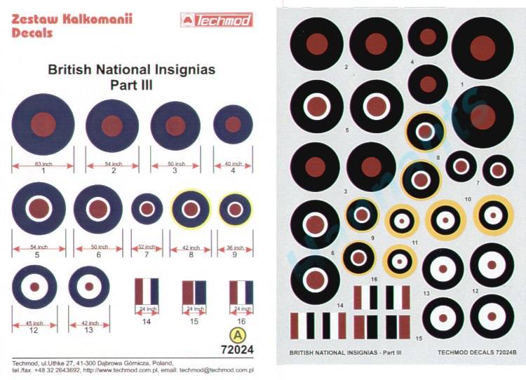 Techmod - 1/72 National Insignia/Roundels and Fin Flashes suitable for Hawker Typhoon, North-American B-25 Mitchell Mustang III