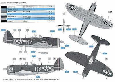 Techmod - 1/72 Republic P-47D/M (2) 226418 HV-A Lt.Col. Francis Gabreski 1944, 4421108 HV-Z Capt Witold Lanowski Insignia Blue upper surface Both 56FG RAF Boxted