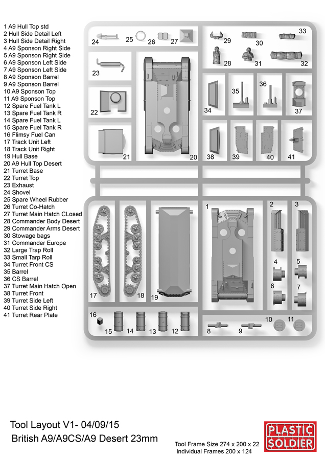 The Plastic Soldier Company - 1/72 A9 British Cruiser Tank. This box set will include 3x models and include desert options and western Europe/desert tank commander options.