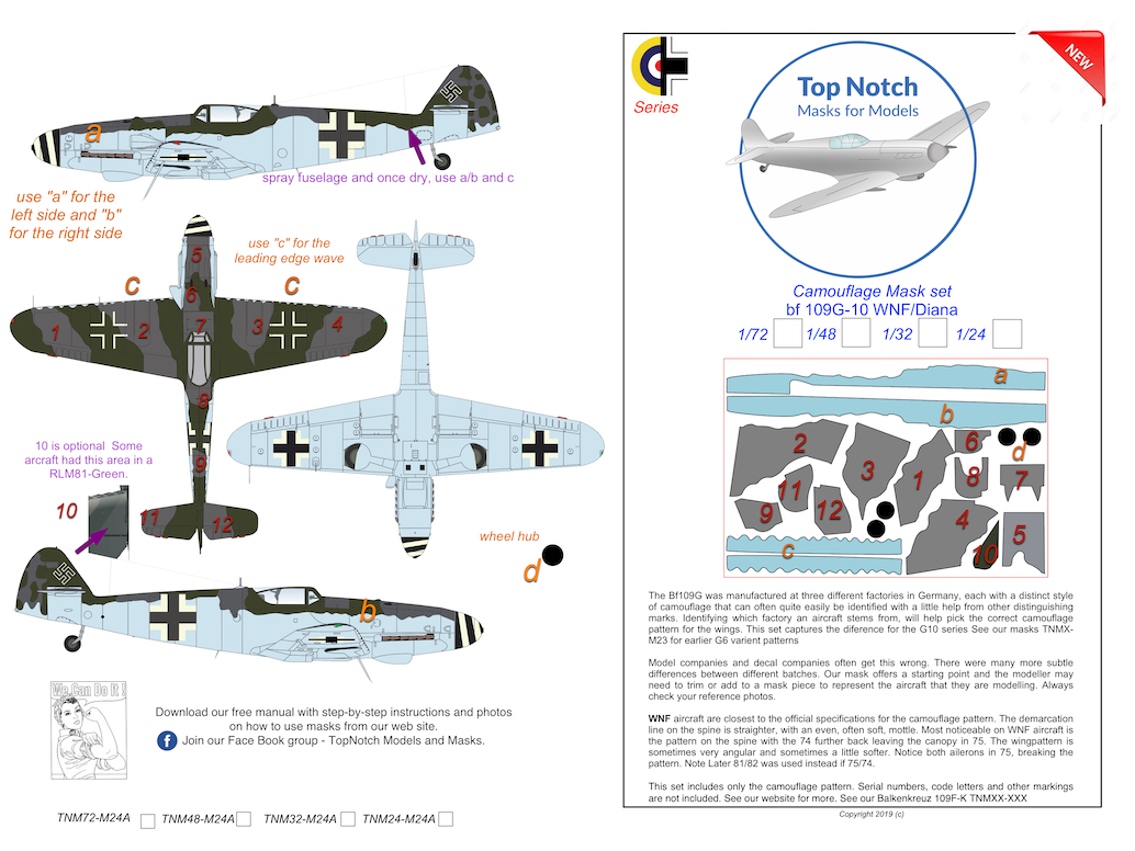 Top Notch - 1/32 Messerschmitt Bf-109G-10 WNF/Diana Camouflage Paint mask pattern (for Revell kits)