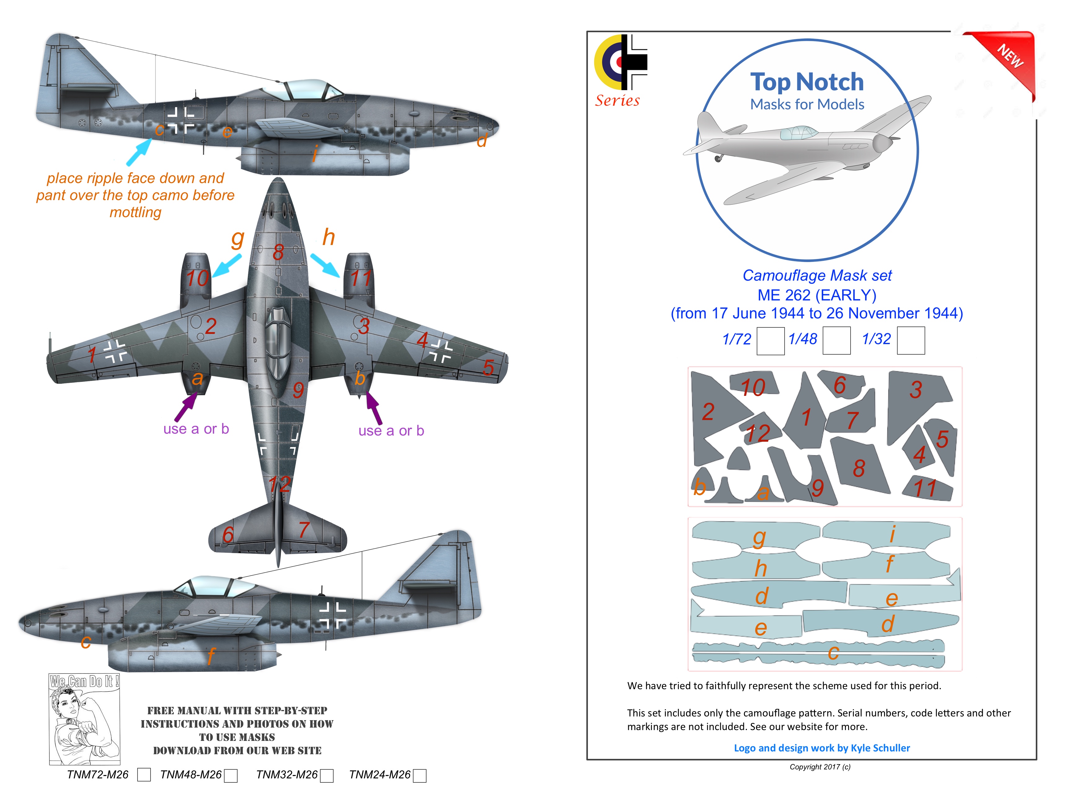 Top Notch - 1/48 Messerschmitt Me-262A-1 early mask (for Revell kits)