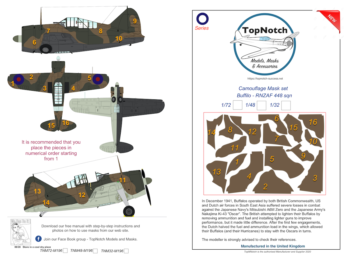 Top Notch - 1/48 Brewster Buffalo Rnzaf 448 sqn camouflage pattern paint mask (for kits)